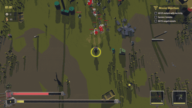Blast zombies & mutants in this fast-paced post-apocalyptic top-down action roguelite game! Battle through randomized biomes, swap out unique weapons, equip insane loadouts, and mutate yourself stronger with collected DNA. Die, unlock permanent perks, and dive back into another brutal run!