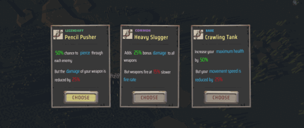 Choose from a huge pool of mutations mid-run. Will you evolve to leech health, ricochet bullets, or leave trails of acid in your wake?